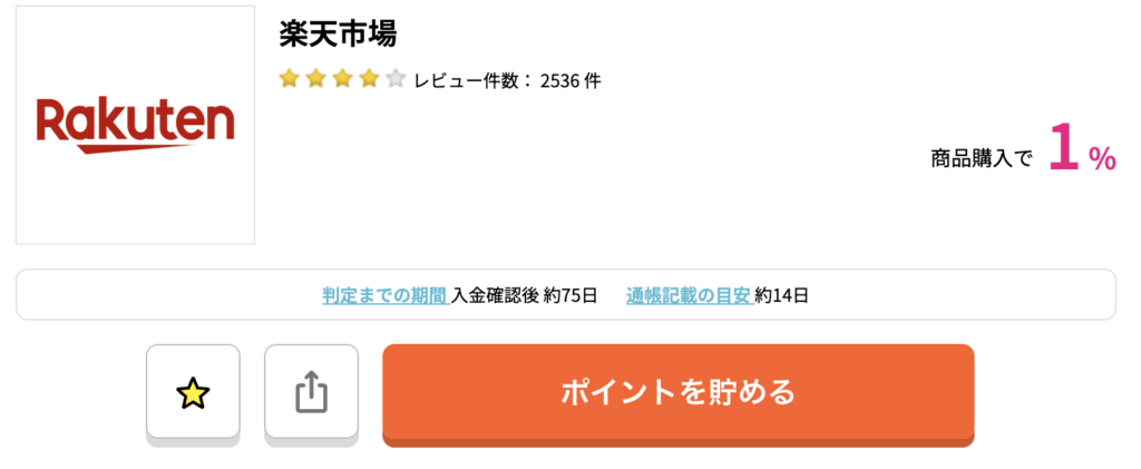 たとえば楽天市場で買い物をするなら、ハピタスで楽天市場を検索して「ポイントを貯める」をクリックして楽天市場に行き、そこで普通に買い物や申込みをすればOKです。楽天ポイントも、いつものように貯まります。