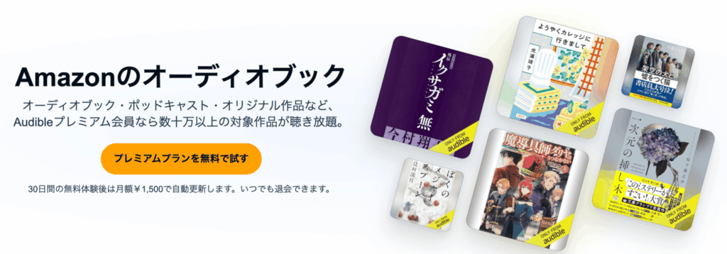 Audible聴き放題で、月額1,500円でオーディオブックが何冊でも聞ける