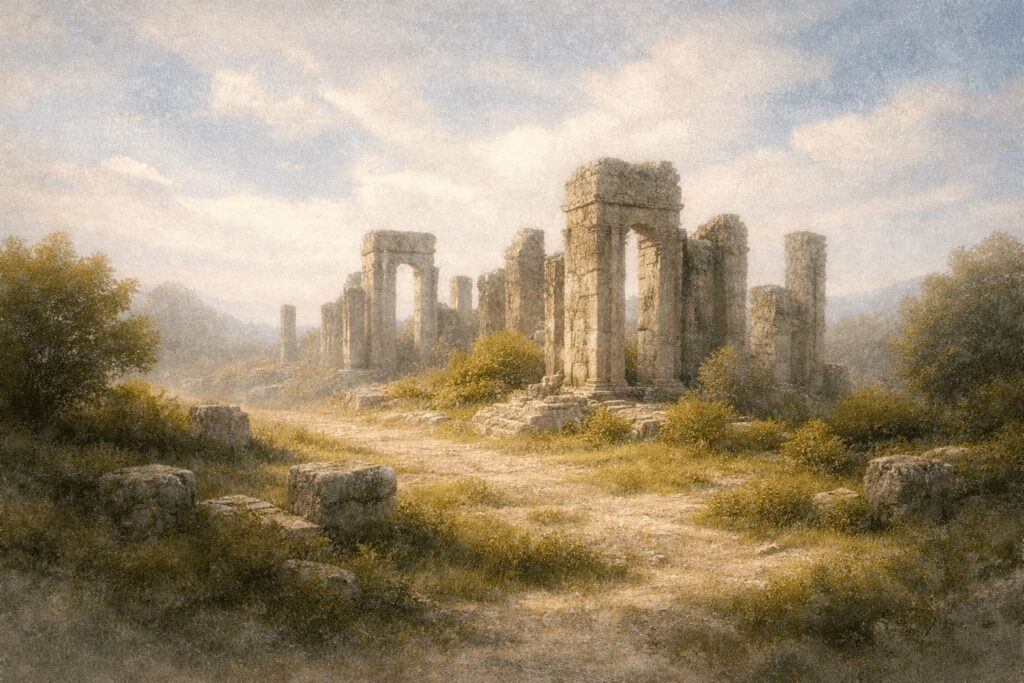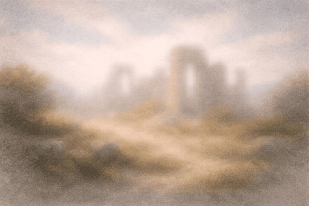 古い遺跡が立っている様子を、ぼんやりでいいので思い浮かべるのです。