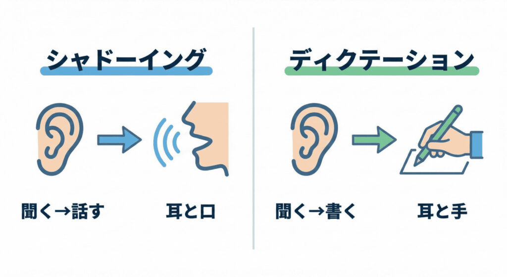 ✅ シャドーイングとディクテーションの明確な違い