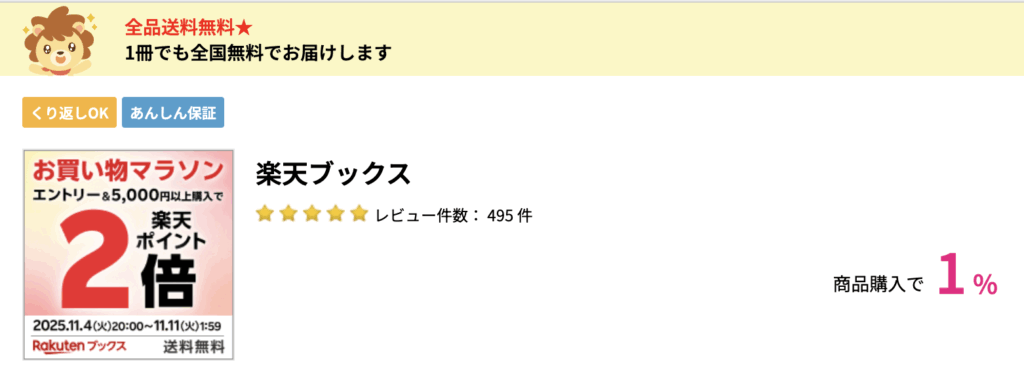 なので私は、いつもハピタス経由で楽天ブックスで買います!
