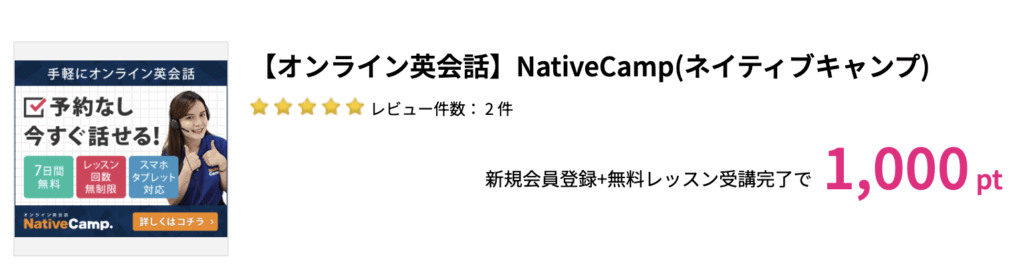 オンライン英会話レッスンは、ハピタス経由で特にポイントが貯まりやすい注目カテゴリーです。