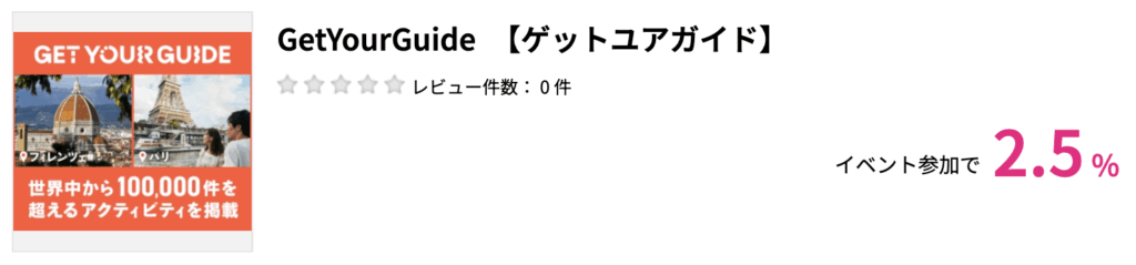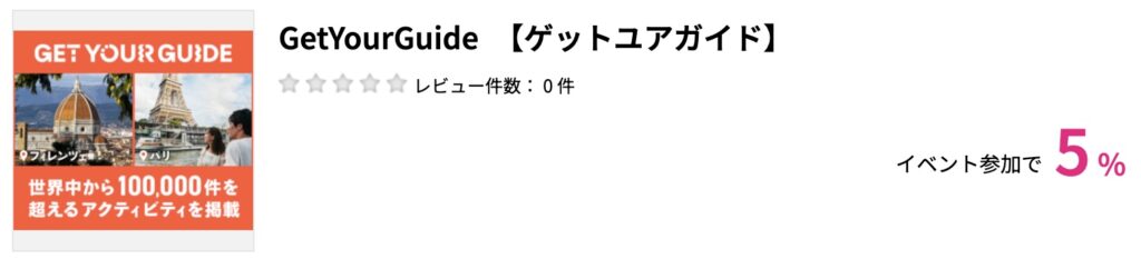 私も、海外旅行ではいつもこのサイトで「何か面白そうなイベントやツアーはないかな」と探しています。ツアーのほか、美術館や史跡のチケットの購入もGetYourGuide経由だとポイントが獲得できます。