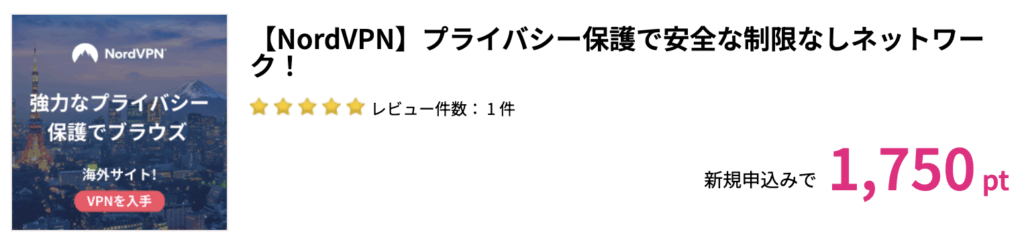ハピタスポイントは、「NordVPN」を初めて利用する方が対象。利用料は、月額でわずかコーヒー1杯分程度。公共wifiなどでの情報漏洩を防ぐためにも、導入しておいて損はないと思います。