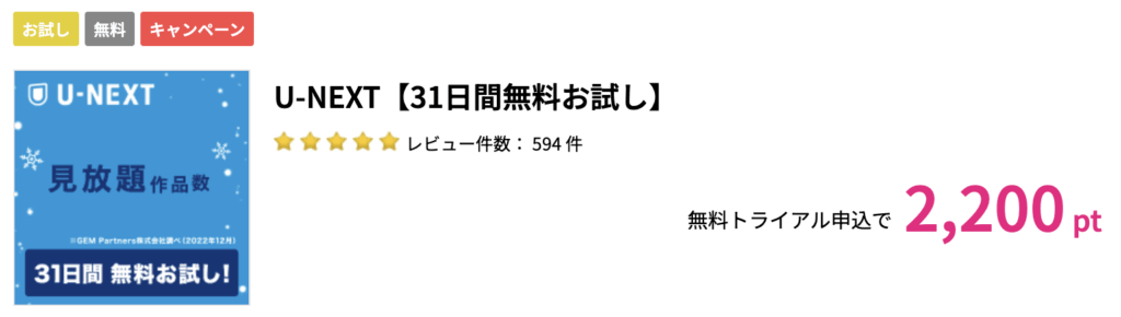 初めて利用する方を対象に、無料体験+新規有料会員登録完了でポイントが獲得できます。
