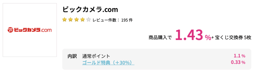 商品購入のたびに何度でもポイント獲得できるので、家電製品を買う時にはamazonではなくまずはビックカメラで探すといいと思います。(※amazonはハピタスポイントの対象外です)