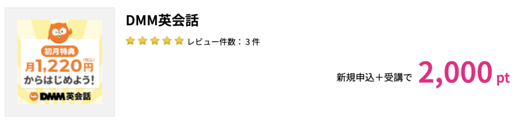英語学習サービスは、レベルや目的に応じて種類が豊富にあるので、ハピタスとの相性は抜群です。たとえば、以下のようなサービスがハピタスのポイント還元の対象になっています。